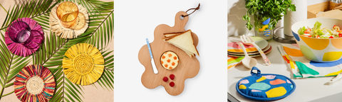 Because feeding friends should be fun. 🍽️Find colorful coasters, cute serveware, bright bowls, and more.